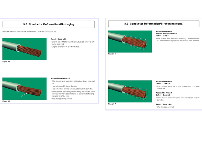 01 This coiled cable assemblies designed with molded DIN connectors. To inspect the inner soldering, we made the bending for electric testing to avoid poor contact. All wires are 100% inspected for any damage to the copper wire after peeling to meet IPC620C standard, to ensure there is no flying wire, and nicked, cut, flattened, scored or other damages