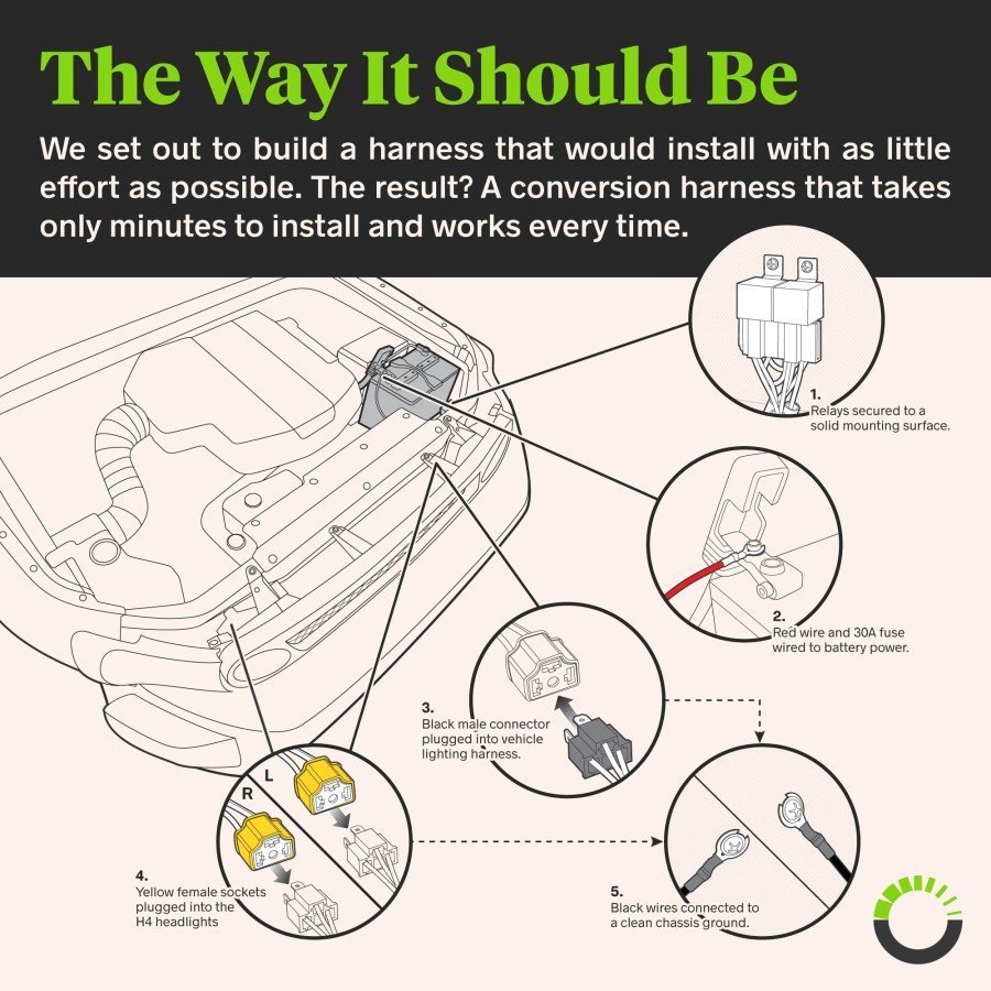 01 An automotive Relay wiring harness is capable of fixing a variety of power related HID lighting issues i.e. intermittent on/off, flickering, delayed start, HID low light output, and uneven brightness. An HID wiring harness for some vehicles is a safety and assurance item to prevent future problems.