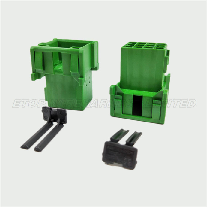 For this automative wire harness, we usually use AMP TYCO components, AMP MCP connectors and contacts are designed for electronic and electrical applications in motor vehicle, including long term use in high vibration, high current and high ambient temperature applications. un-sealed connector housing, called 1-967627-1. it belongs to AMP MCP 2.8,AMP MCP Connector system. it is housing for male terminals, with 2.8mm pitch, wire-to-wire system, 12positions for connectors,and also other more positions available, just for your choose and use, the nominal voltage 12v,24v, is for signal circuit applications . AMP MCP housing connectors feature 1-92 cavity arrangements available with a locking latch or lever latch mating mechanism. AMP MCP housings accepts size 9.5, 6.3/4.8K, 2.8 and 1.5K contacts, carrying up to 100 amps.