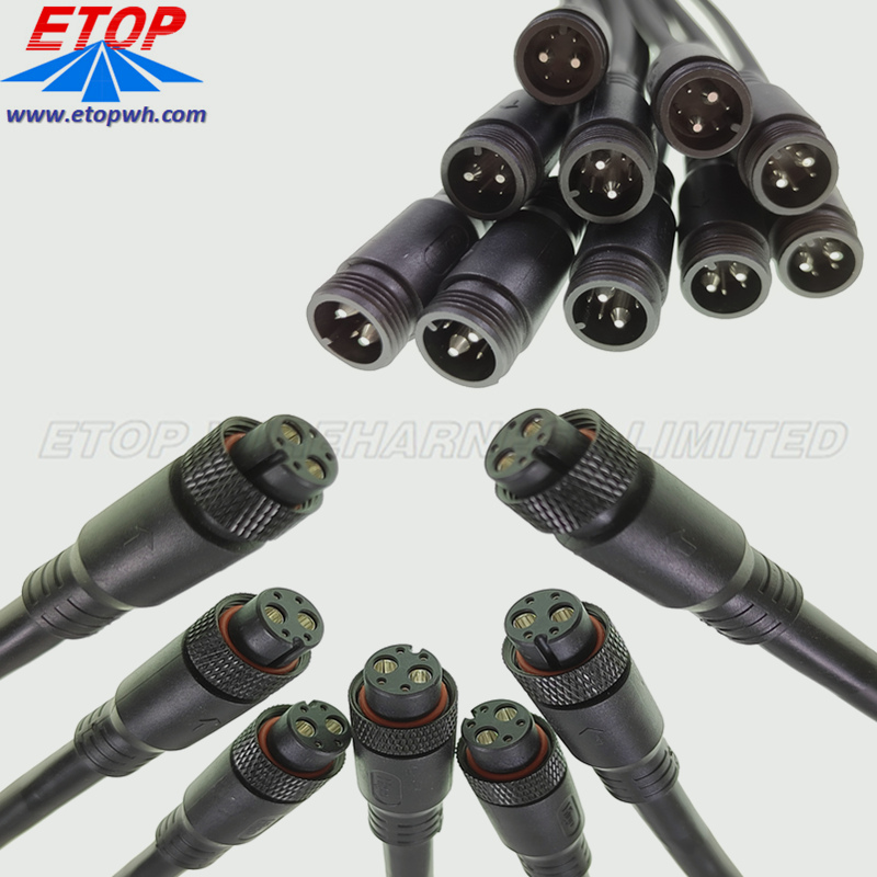 There are 2pin, 3pins, 4pins, 5pins, 6pins male and female waterproof connector cable for M6 series, to see the details descriptions in the photos.