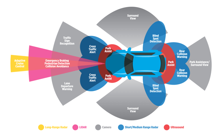 Parking sensor, Pedestrian protection system, Rain sensor, Surround View system, Tire Pressure Monitoring,Traction control system, Traffic sign recognition,Turning assistant