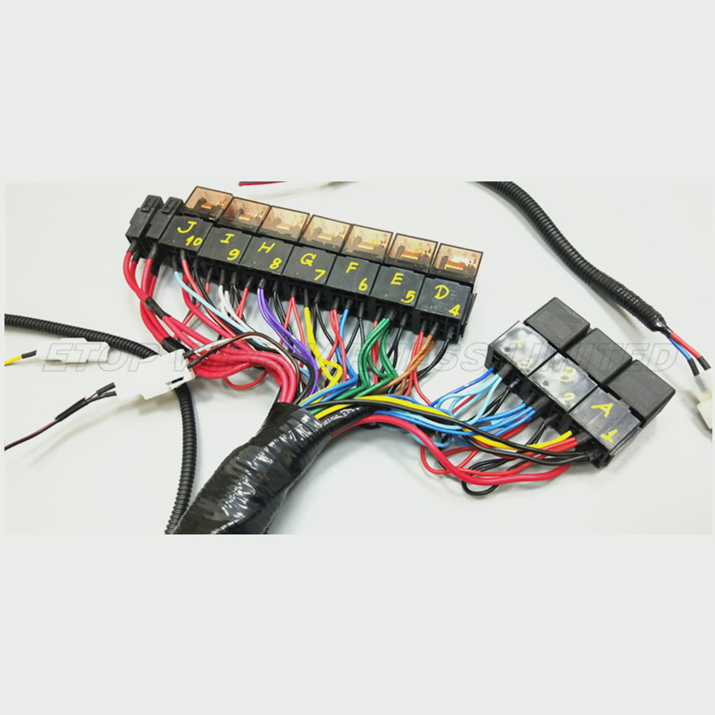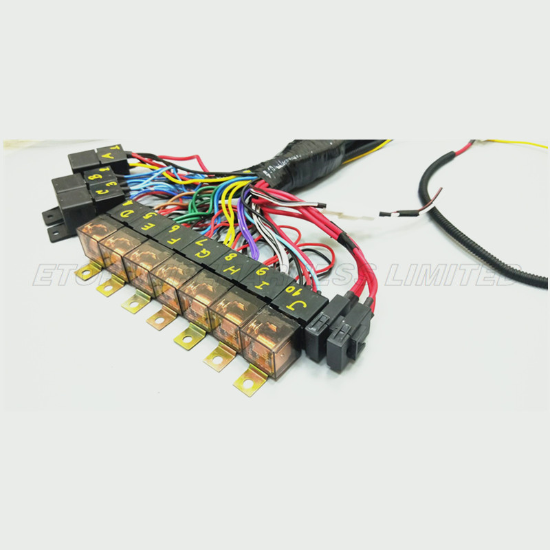 This custom automotive relay cable harnesses covered with split corrugated tube for protection.Also with much relay connectors and socket. Related auto wires can be chosed as customer requirement, like AVSS, AVS, FLRY, TXL, GXL, etc. Also connector can be original AVL one or local equivalent one.
