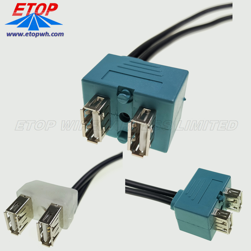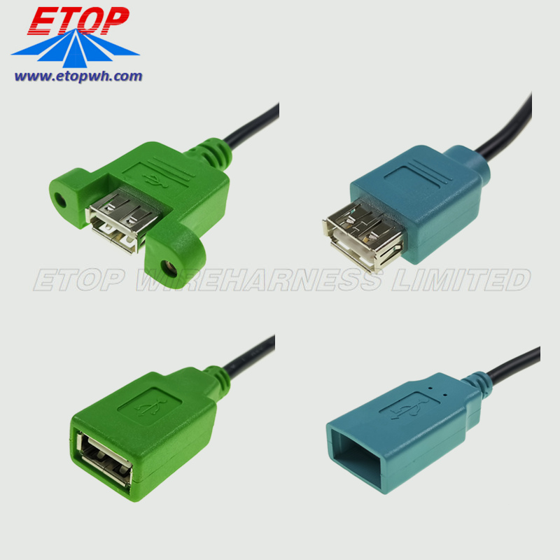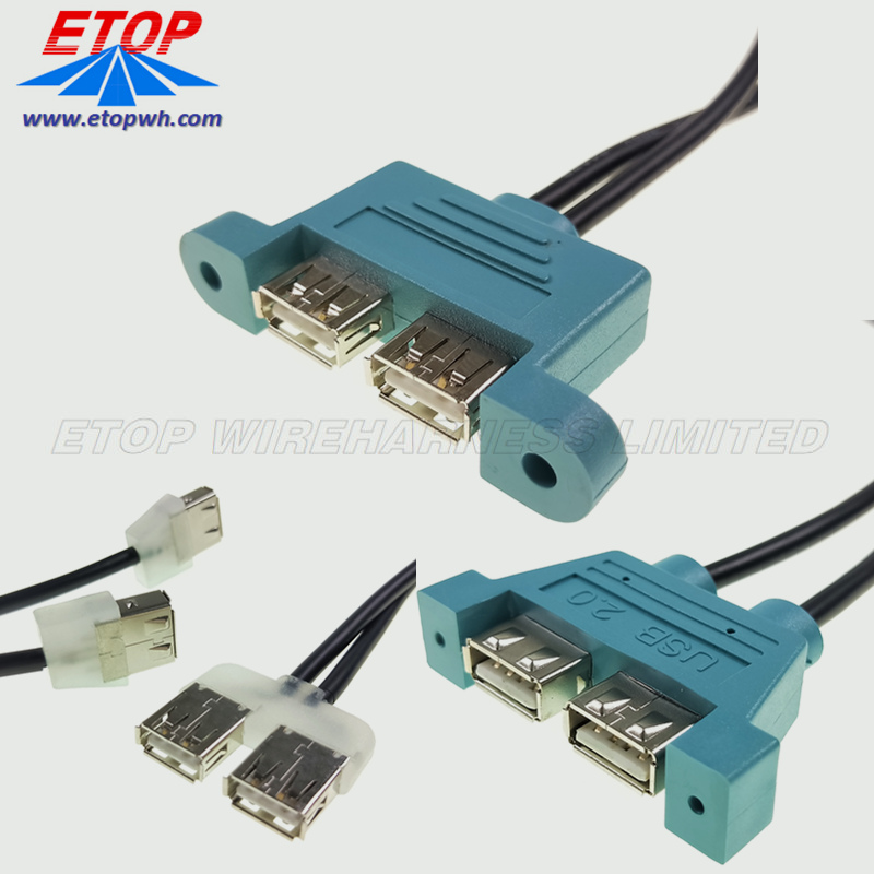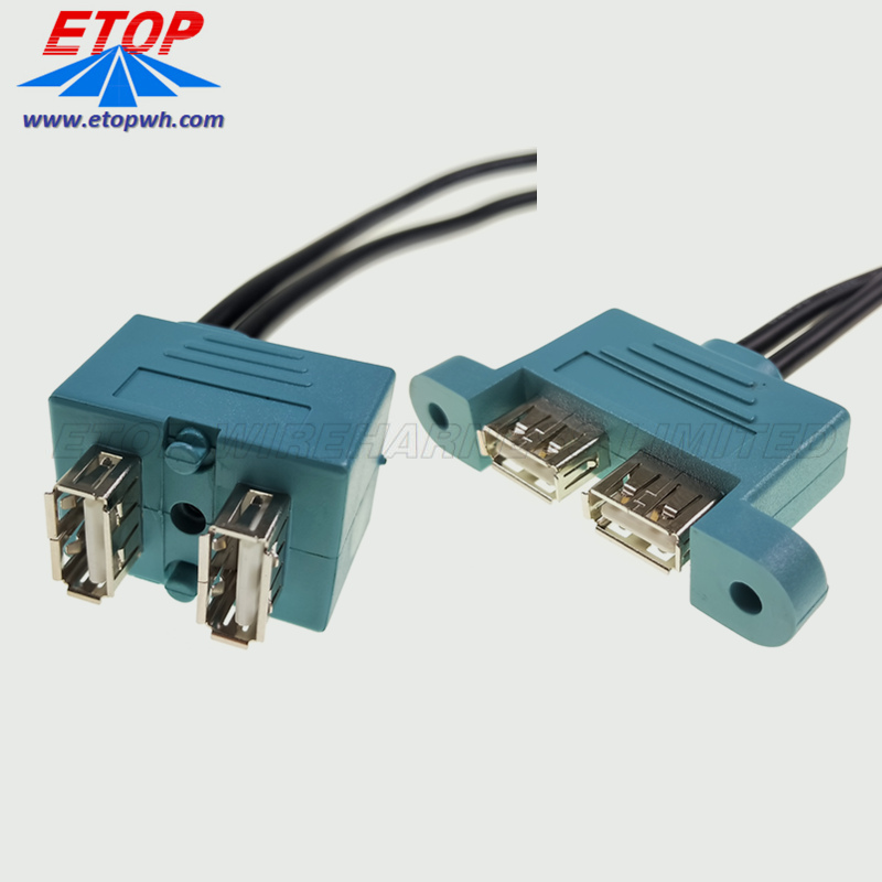 01 Double Panel Mount to female USB A Cable with Custom design versions for unique terminations and tooling are welcomed.