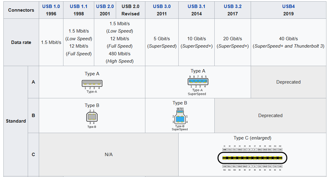 Universal Serial Bus (USB) is an industry standard that establishes specifications for cables and connectors and protocols for connection, communication and power supply (interfacing) between computers, peripherals and other computers. Released in 1996, the USB standard is currently maintained by the USB Implementers Forum (USB-IF). There have been four generations of USB specifications: USB 1.x, USB 2.0, USB 3.x and USB4.